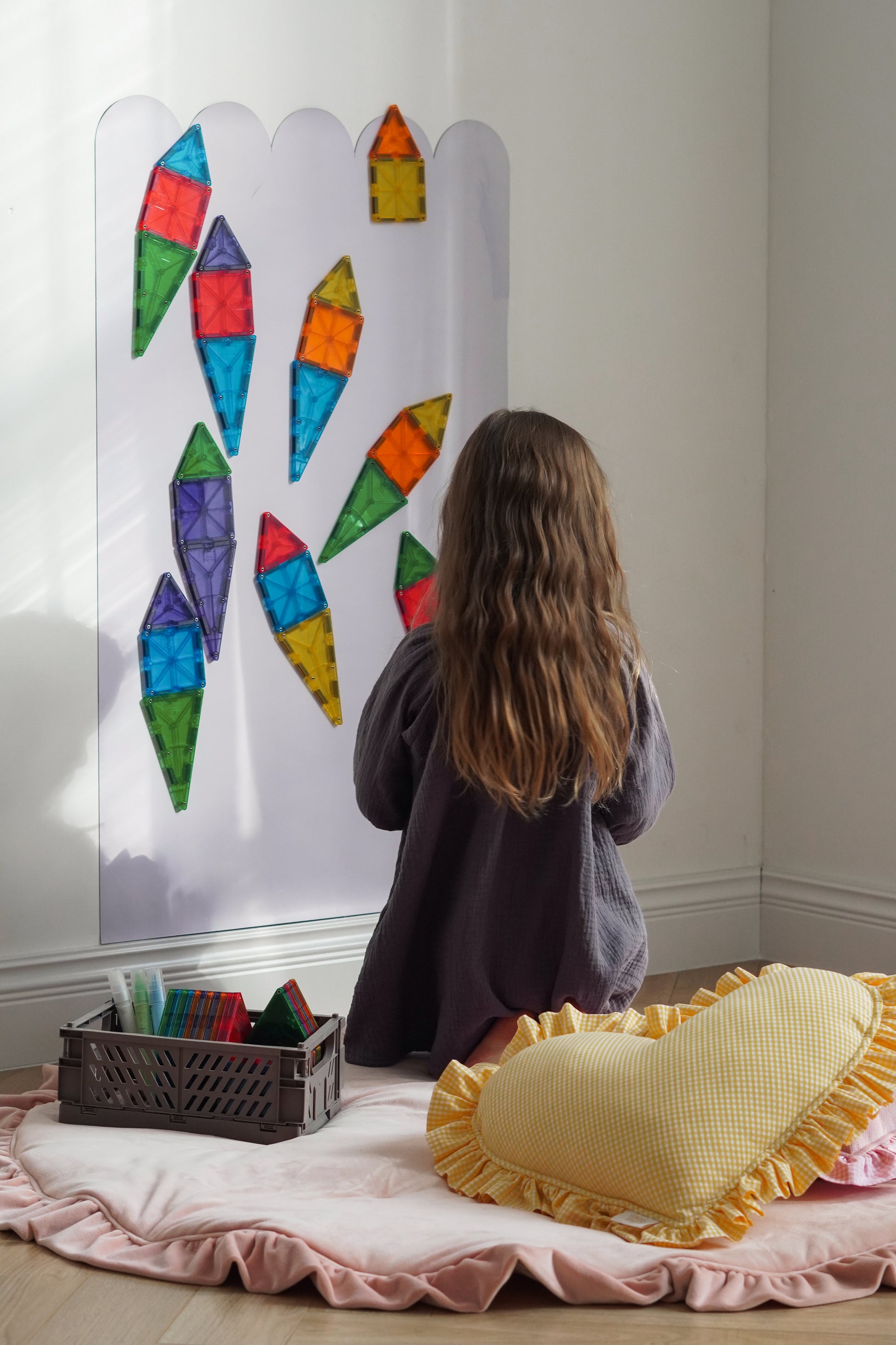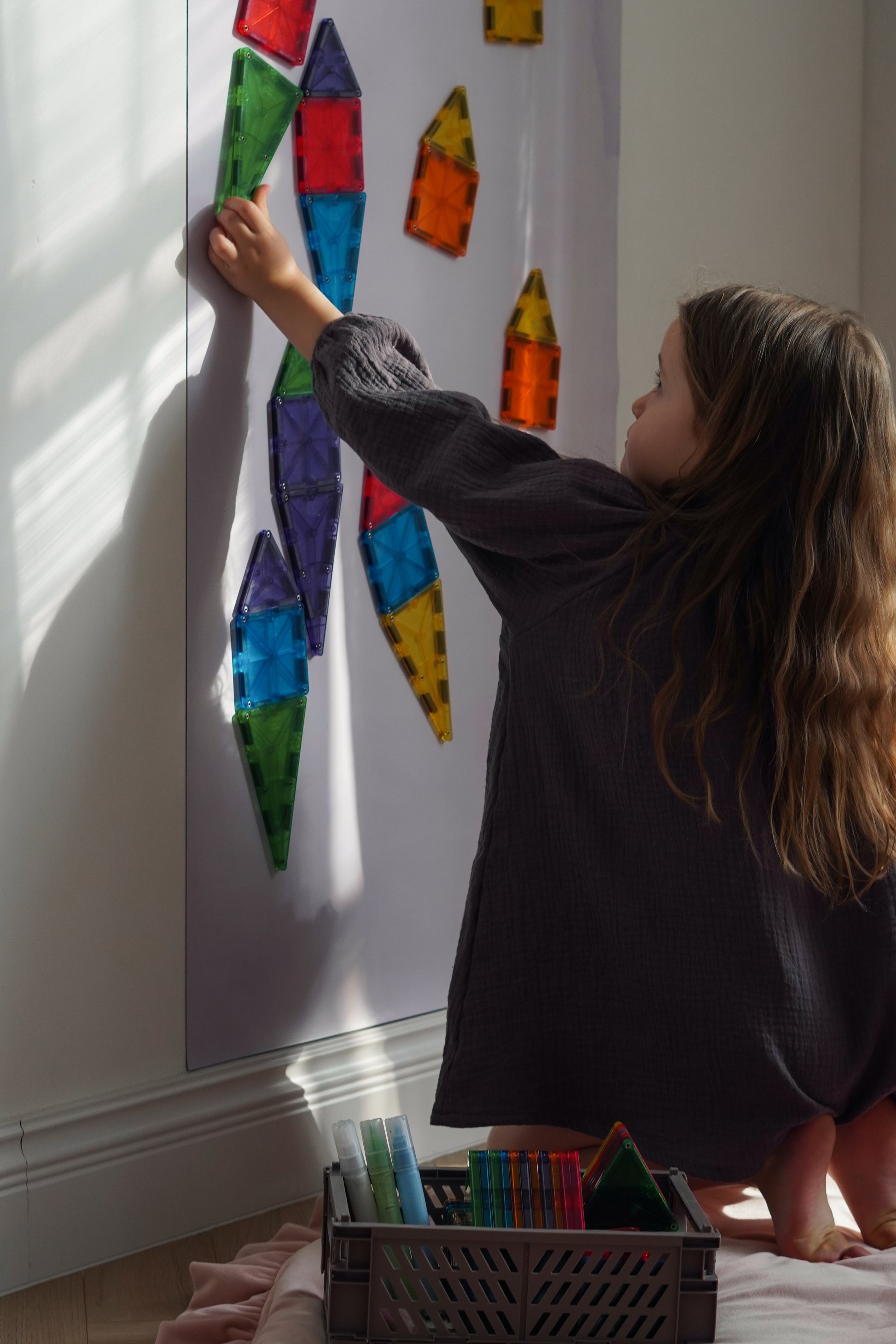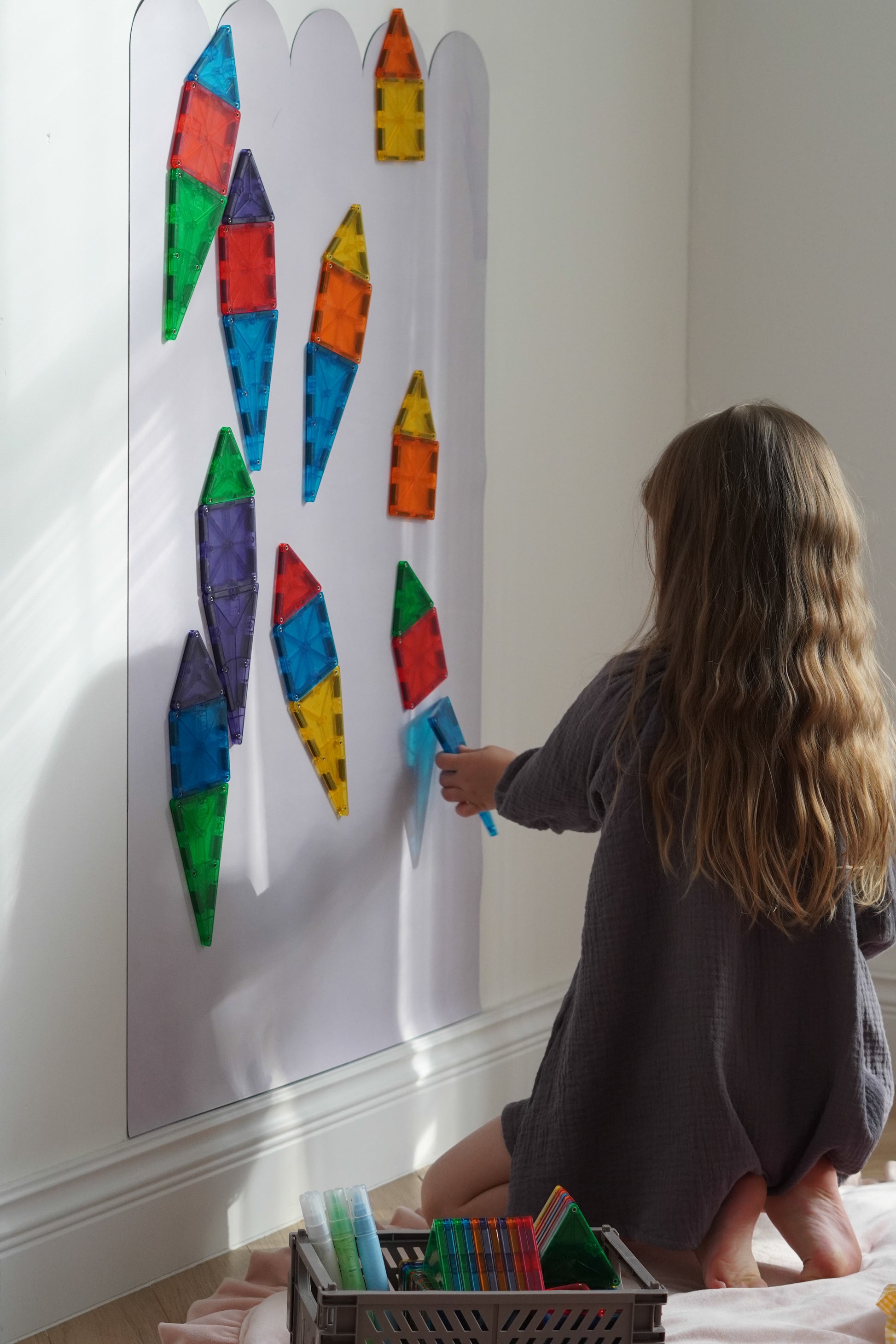 Poznaj Tiny A’Wall – najlepszą magnetyczną tablicę dla dzieci w formie matowej naklejki, która rośnie razem z maluchem. To naklejka magnetyczna na ścianę, która rozwija wyobraźnię, wspiera naukę pisania i zapewnia godziny twórczej zabawy.